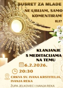 Ovotjedni susret za mlade,treći na temu “Ne ubijam,samo komentiram ili?” je u petak 6. veljače,a ovoga puta okupit ćemo se...