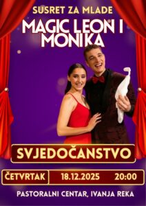 Pozivamo vas i ovaj tjedan na susret za mlade uz zanimljive goste Magic Leon-pobjednik Supertalenta sa suprugom.