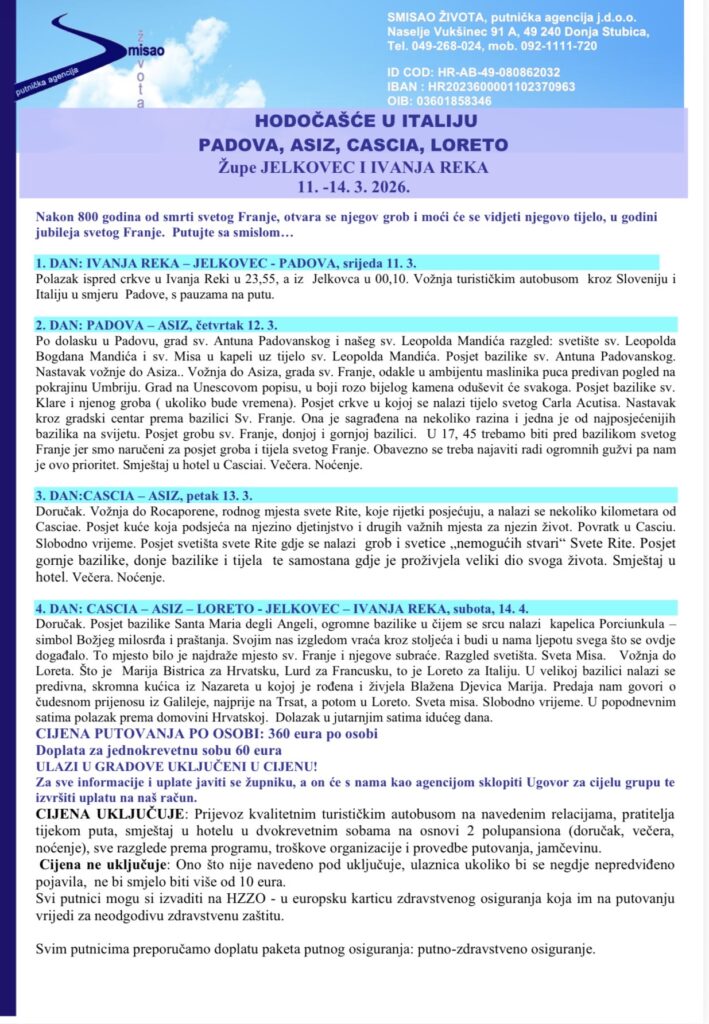 Dragi župljani, hodočašće JE POPUNJENO i više ne primamo prijave.