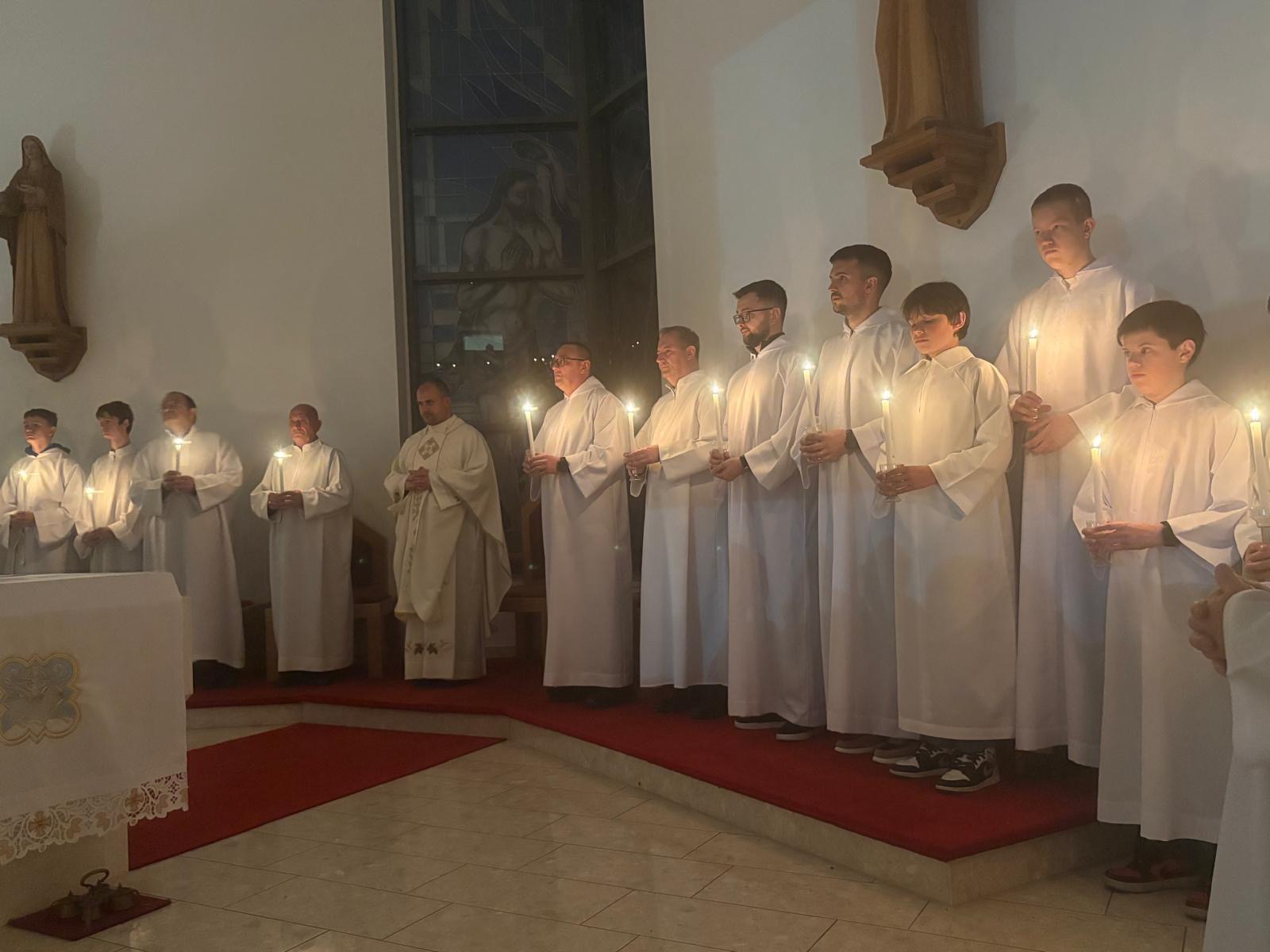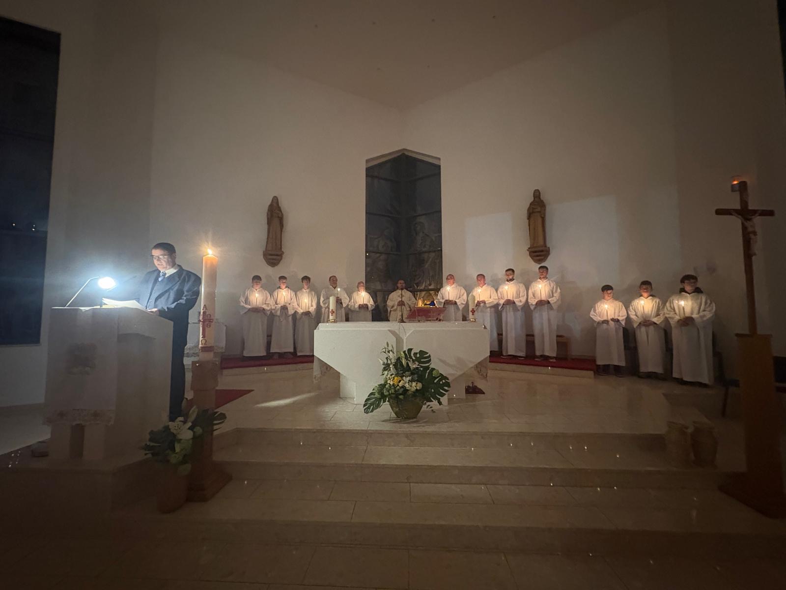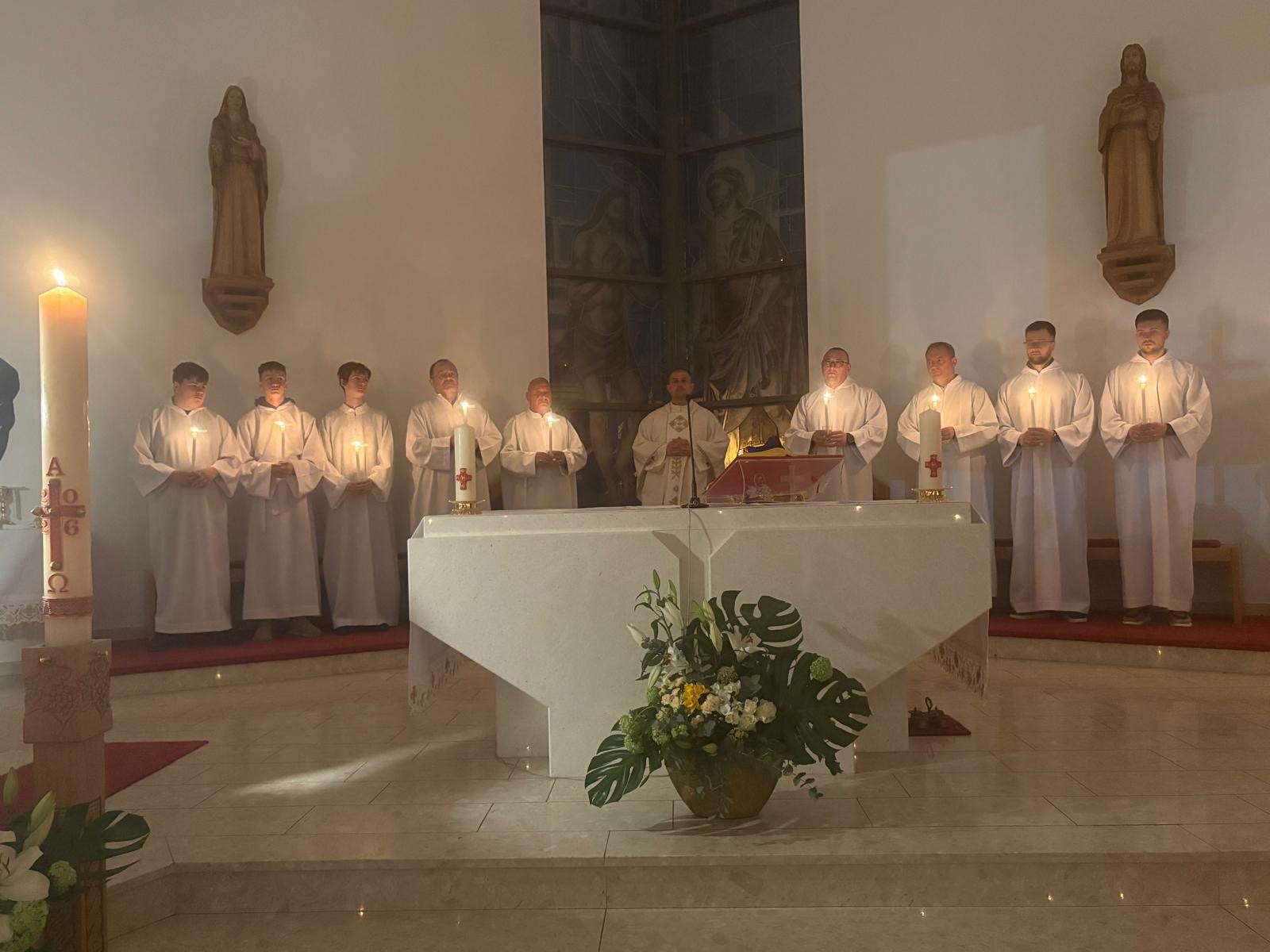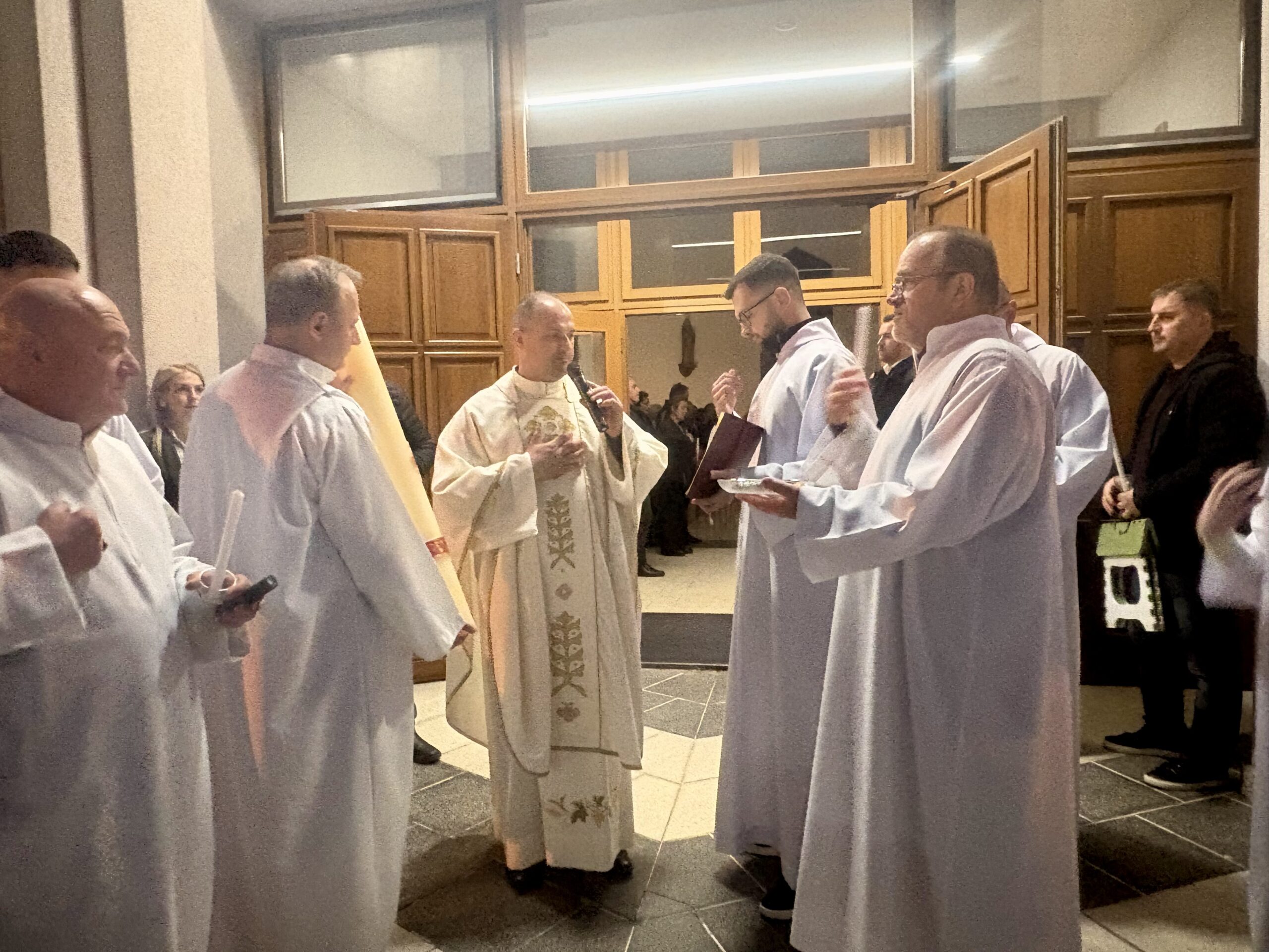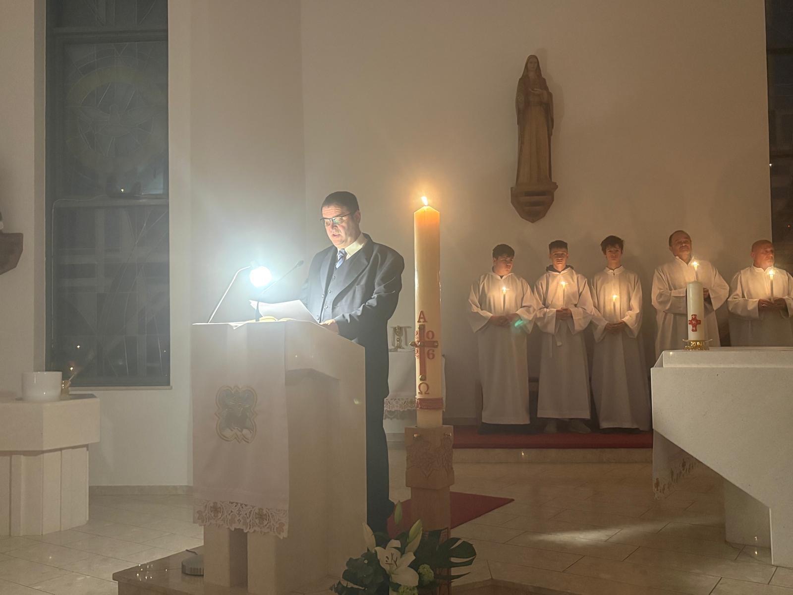 Vazmeno bdijenje počinje službom svjetla kako bismo doživjeli da smo djeca svjetla i da idemo za Kristom – Svjetlom svijeta, kako je zapisao već sveti Ivan Evanđelist: “Ja sam svjetlo svijeta, tko mene slijedi, sigurno neće ići po tami, nego će imati svjetlo koje vodi u život” (Iv 8,12).