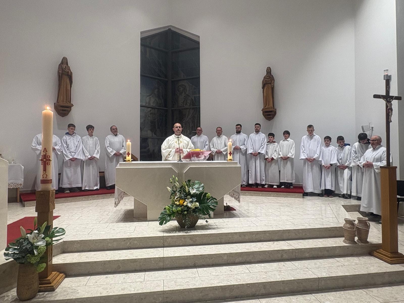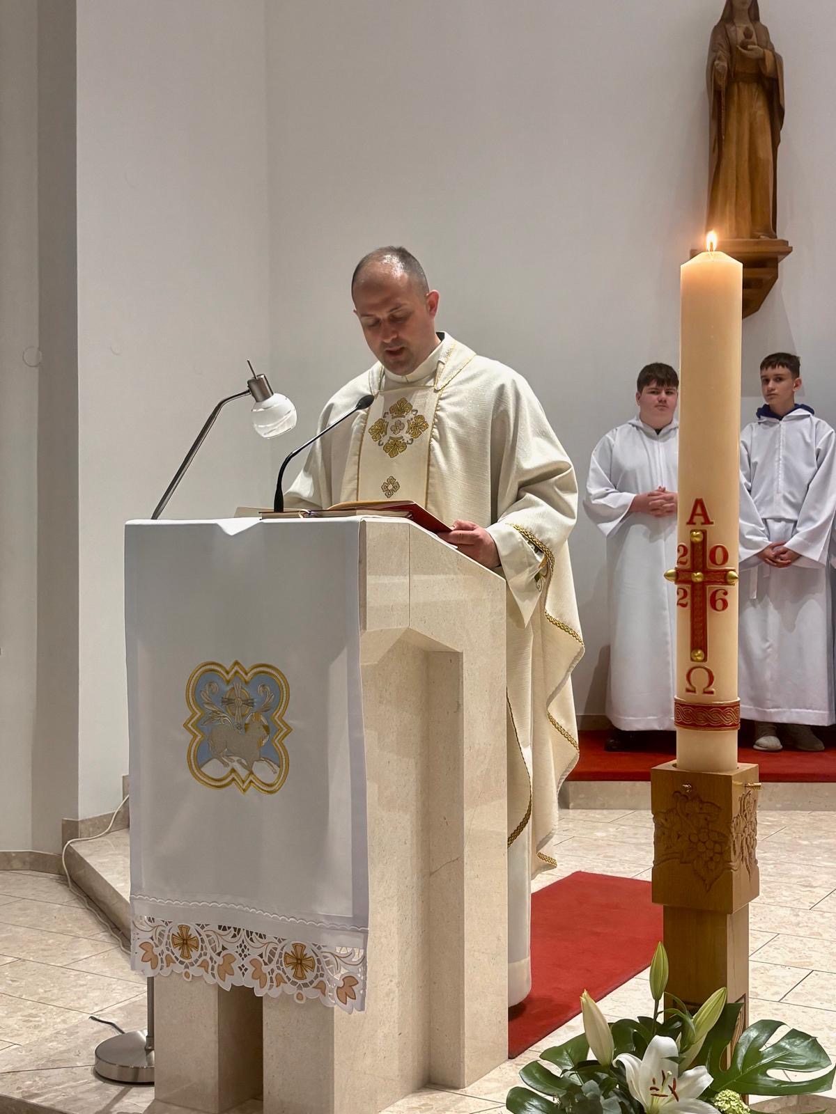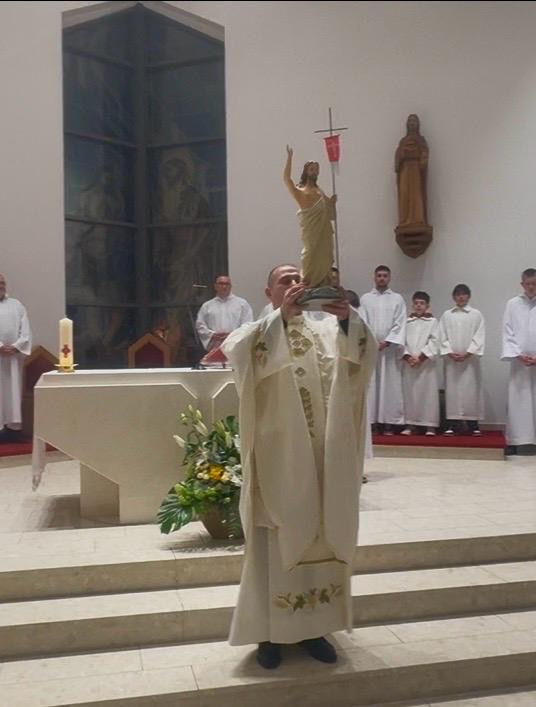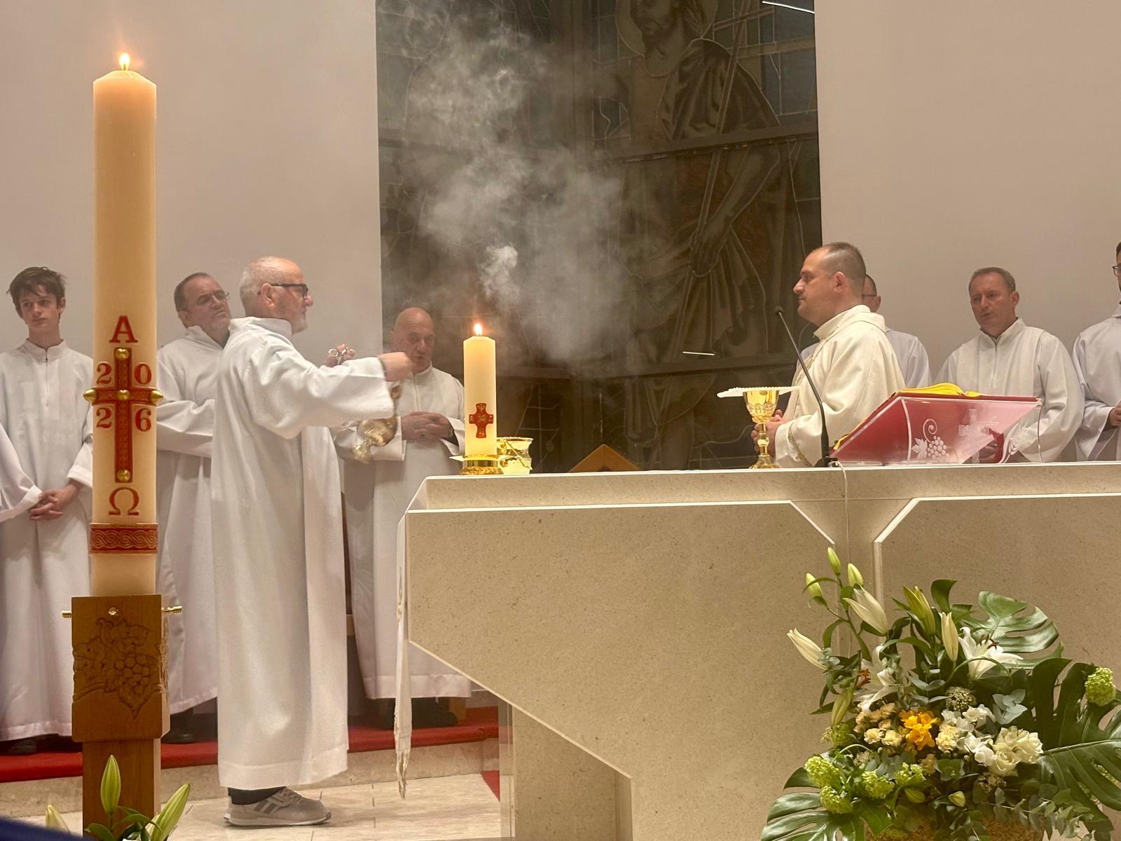 Trostruki usklik izraz je velike čežnje i potvrda predanja Kristu – Svjetlu života. Cijela je crkva osvijetljena i radost sjaji na licima vjernika, nema tame, nema straha jer sve je pobijeđeno dolaskom Krista koji nas rasvjetljuje, otvaraju se oči da bismo prepoznali prisutnog Gospodina koji daruje život svima. Blagoslov je sišao na sve.
